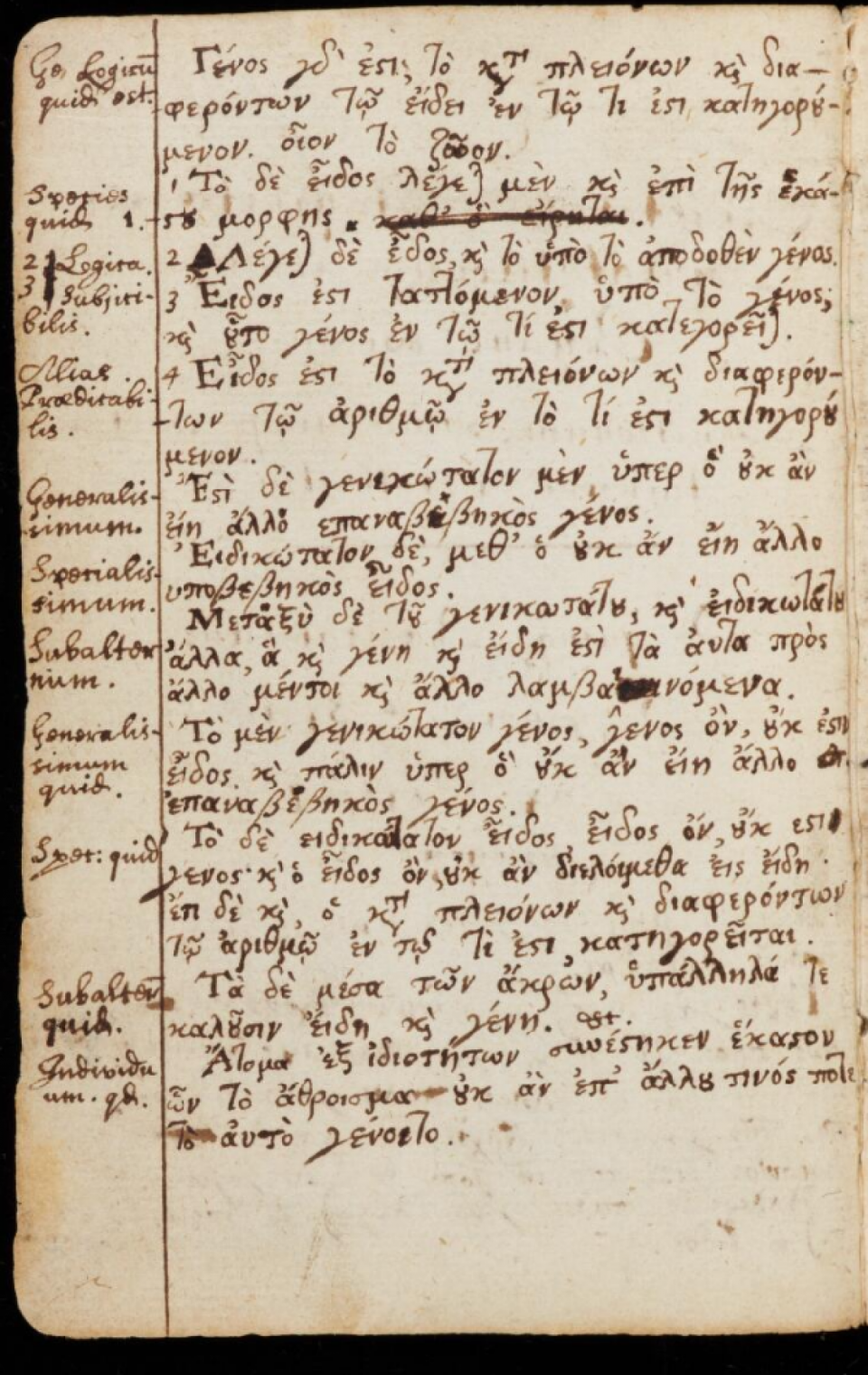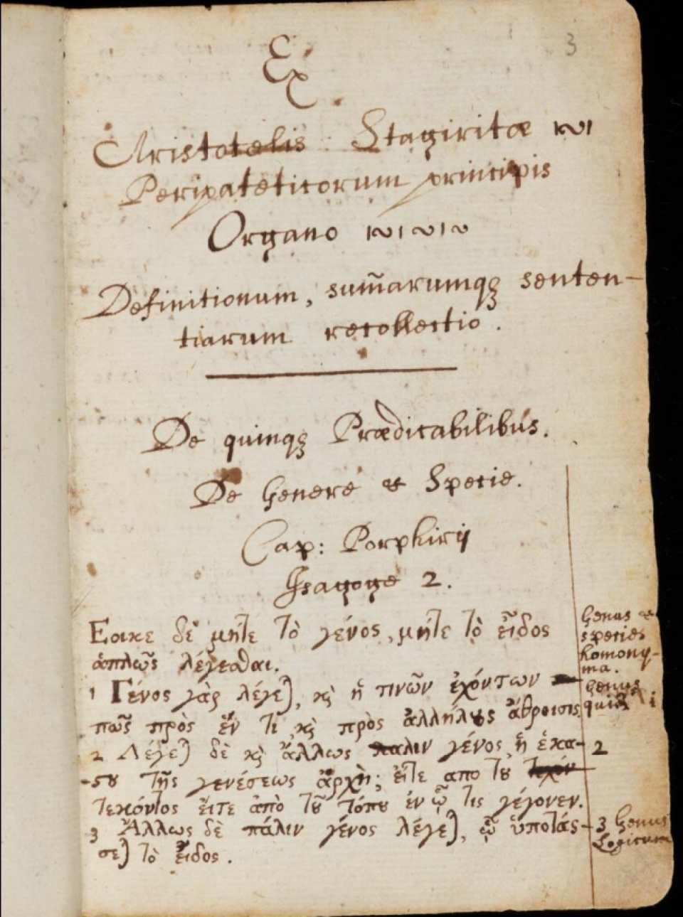 Πολλές από αυτές τις σημειώσεις περιλαμβάνουν τη μελέτη του Αριστοτέλη (Όργανον και Ηθικά), την Εισαγωγή του Πορφυρίου κ.α.