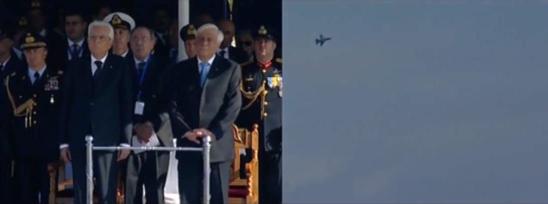 «Καλημέρα Θεσσαλονίκη, καλημέρα Μακεδονία. Το «όχι» των Ελλήνων αποτελεί πηγή ενότητας και συνεργασίας όπως αποδεικνύει η παρουσία του προέδρου της Ιταλικής Δημοκρατίας. Να ατενίσουμε το μέλλον με αισιοδοξία και ελπίδα. Χρόνια Πολλά», είπε από το πιλοτήριο του F16.