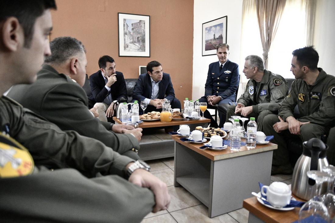 Ο πρωθυπουργός αναφέρθηκε στην «συγκλονιστική» εμπειρία που είχε, όταν πέταξε με τον αρχηγό της Π.Α. σε εναν συνδυασμό τριών αεροσκαφών απο την Πτέρυγα Μάχης στη Λάρισα, οχι σε μια τυπική πτήση, αλλά σε μια εικονική αερομαχία.