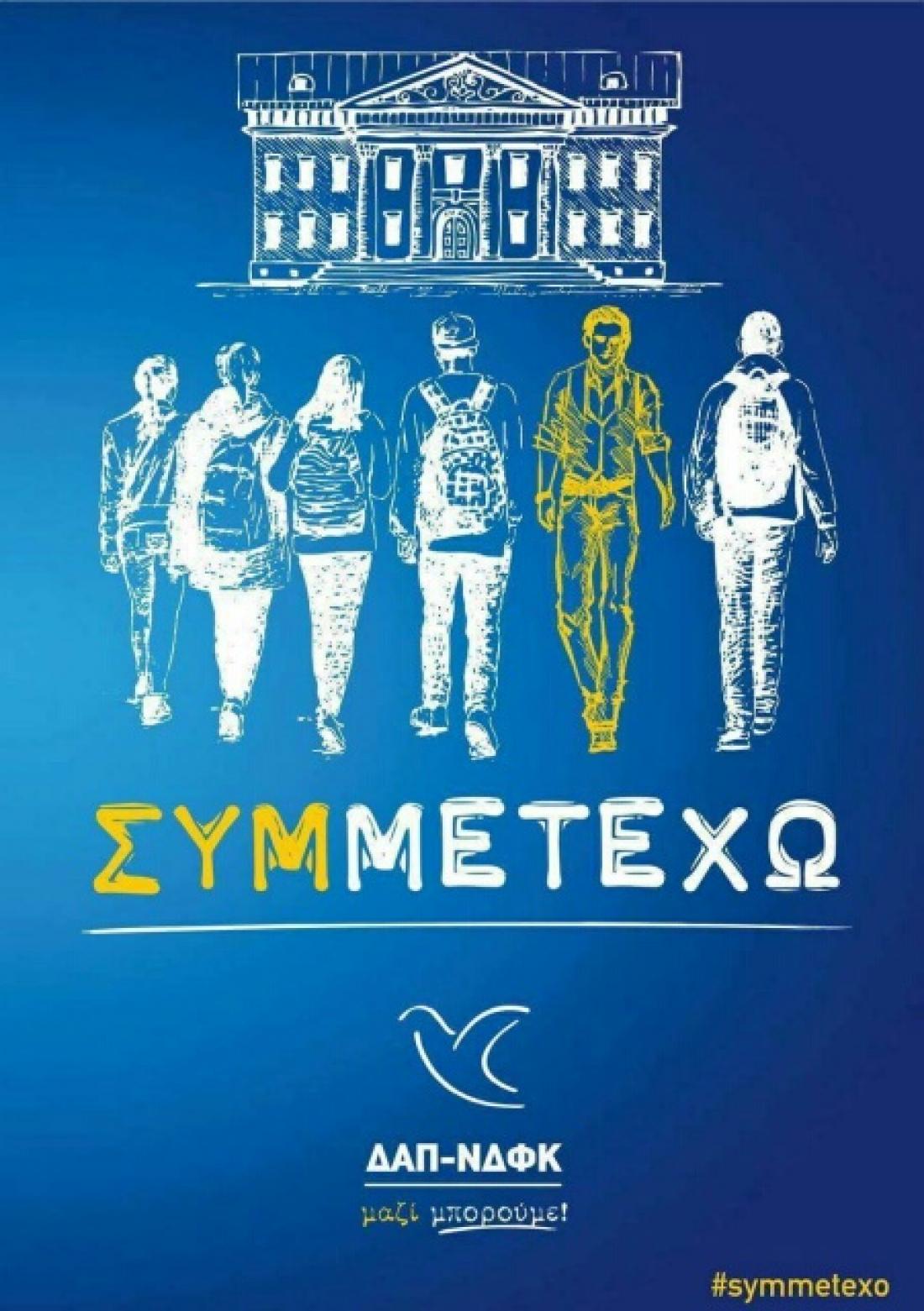 Όπως οι ίδιοι λένε, οργανώσεις της ΔΑΠ – ΝΔΦΚ ανά την ελληνική επικράτεια που αρνούνται να αποδεχτούν την απόφαση διάλυσης, με την αφίσα και το σύνθημα #symmetexo επέλεξαν να εκφράσουν το πολιτικό στίγμα της φοιτητικής παράταξης για το φετινό ακαδημαϊκό έτος.