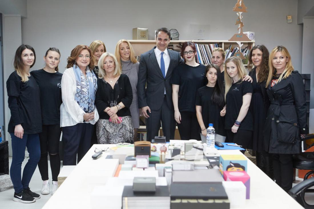 Ο κ. Μητσοτάκης ξεναγήθηκε στους χώρους εργασίας τους και ενημερώθηκε για τα προϊόντα που παράγονται.