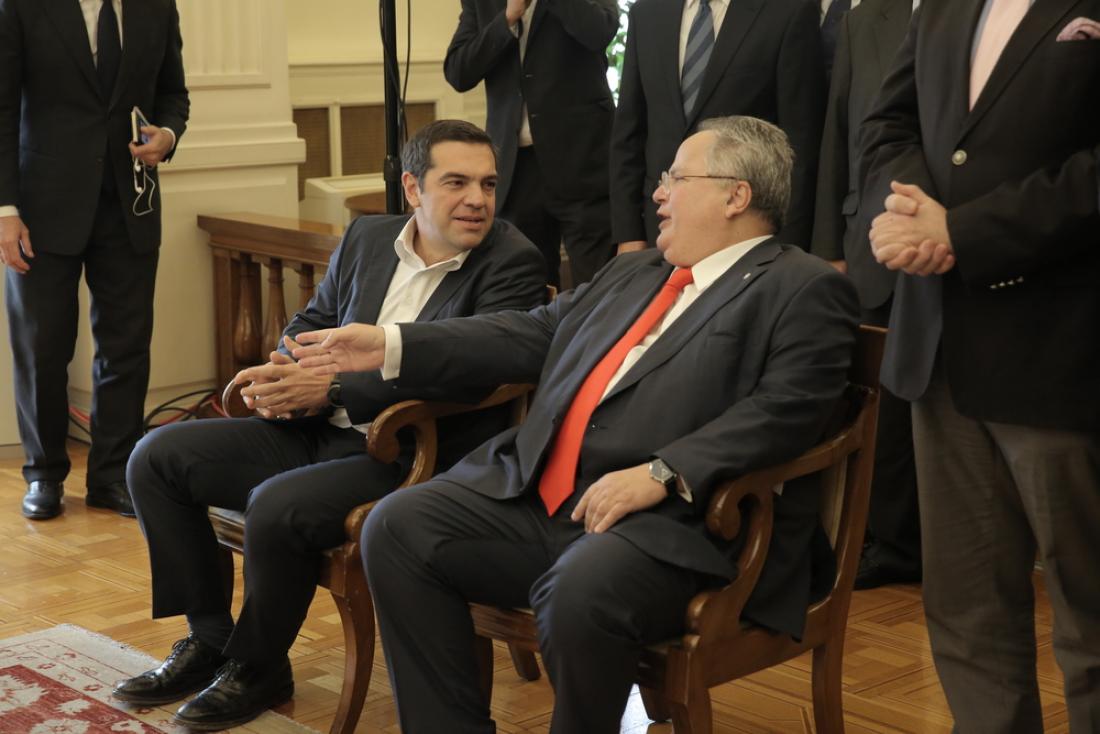 «Φεύγεις σε μια ημέρα χαράς για την εξωτερική μας πολιτική», είπε ο πρωθυπουργός Αλέξης Τσίπρας, απευθυνόμενος στον Νίκο Κοτζιά, «μια ημέρα χαράς», όπως είπε, «διότι όχι μόνο ανοίγει ο δρόμος για την υλοποίηση μιας ιστορικής συμφωνίας με τους γείτονες μας (σ.σ.της πΓΔΜ) που ανοίγει μια προοπτική ευημερίας και ειρήνευσης στην περιοχή μας αλλά και γιατί , μετά από οκτώ χρόνια λιτότητας, πράγμα το οποίο ανοίγει τον δρόμο για πιο αισιόδοξες μέρες για τον ελληνικό λαό».