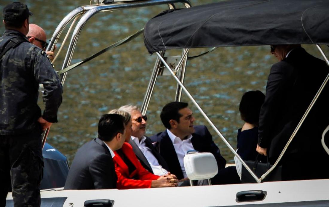 Αμέσως μετά την τελετή υπογραφής της συμφωνίας μεταξύ των δύο χωρών, στους Ψαράδες των Πρεσπών, ο Αλέξης Τσίπρας και ο Ζόραν Ζάεφ διέσχισαν τη λίμνη με σκάφος του Λιμενικού για να βρεθούν στην πλευρά της πΓΔΜ, στην πόλη Οτέσοβο, όπου θα παρακαθίσουν σε γεύμα.