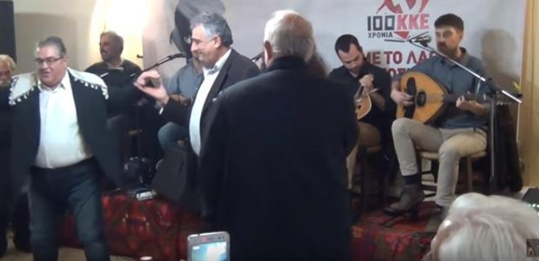 Το συγκρότημα του Βασίλη Σταυρακάκη έκανε την αρχή και έπαιξε χορό από τα μέρη του κ. Κουτσούμπα, τη Φθιώτιδα, από όπου και κατάγεται κι ο Γ.Γ του ΚΚΕ χωρίς δεύτερη σκέψη έσυρε το , χωρίς να λείπουν και οι απαραίτητες χορευτικές φιγούρες.