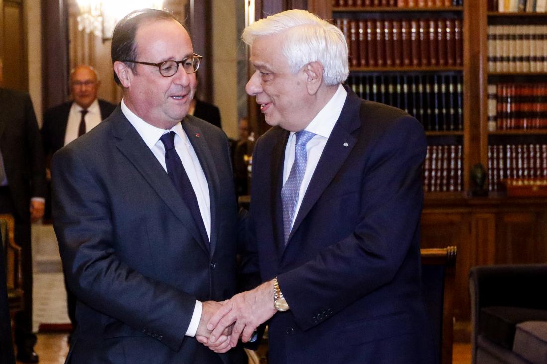 Για μιαν ακόμη φορά σας υποδέχομαι στην Αθήνα και στην Προεδρία της Δημοκρατίας, υπενθυμίζοντας το αυτονόητο για εμάς, τους Έλληνες. Ο François Hollande ήταν, είναι και θα παραμείνει ένας μεγάλος Φίλος της Ελλάδας αλλά και μια ηγετική πολιτική φυσιογνωμία στον Ευρωπαϊκό χώρο. Και εξηγούμαι: