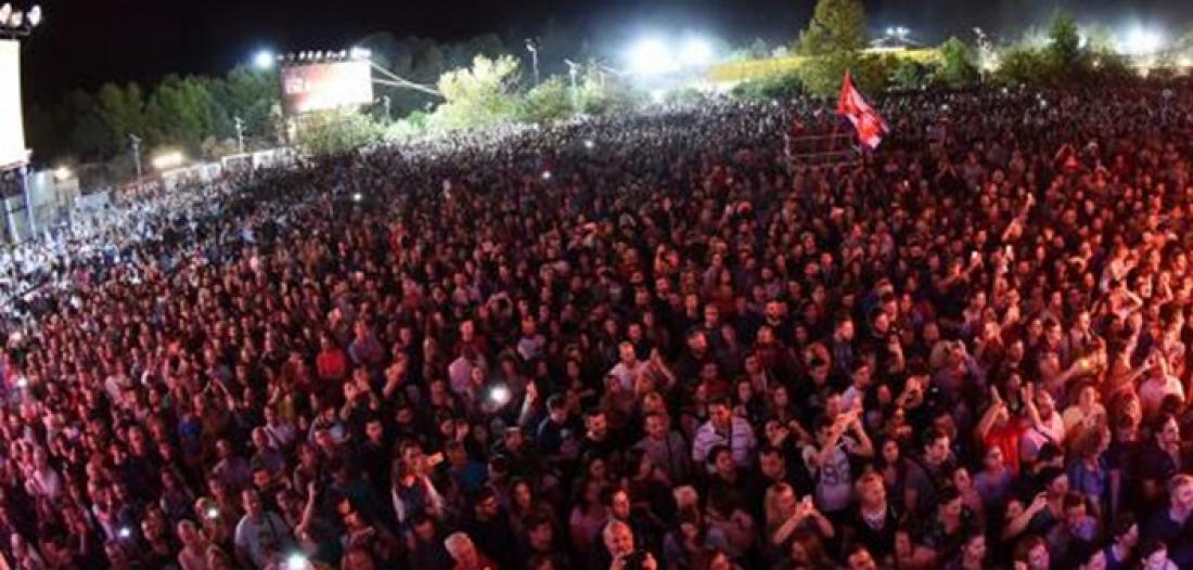 Mε ένα βίντεο της ΚΝΕ με τον μεγάλο ποιητή Γ. Ρίτσο να απαγγέλλει στο 3ο Φεστιβάλ της ΚΝΕ, το 1977, το ποίημά του «Τρία κόκκινα γράμματα» ολοκληρώθηκε η πολιτική συγκέντρωση στο Φεστιβάλ «100 χρόνια ΚΚΕ-50 χρόνια ΚΝΕ» στο Πάρκο Τρίτση, στην οποία νωρίτερα μίλησε ο ΓΓ της ΚΕ του Κόμματος, Δημήτρης Κουτσούμπας και απηύθυνε χαιρετισμό ο Γραμματέας του ΚΣ της ΚΝΕ, Νίκος Αμπατιέλος και η Παλαιστίνια αγωνίστρια Αχέντ Ταμίμι.