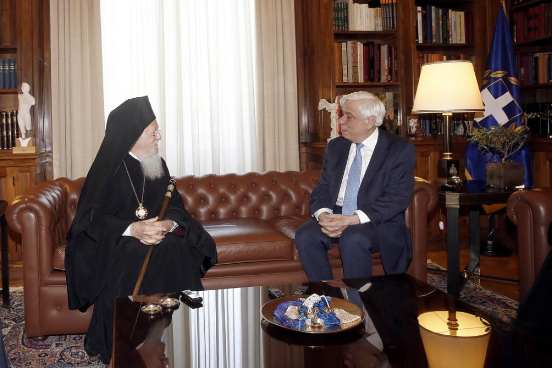 Από την πλευρά του, ο Οικουμενικός Πατριάρχης Βαρθολομαίος, αφού ευχαρίστησε τον Πρόεδρο της Δημοκρατίας για τη θερμή υποδοχή, τόνισε ότι υπολογίζουμε στη στήριξη του ελληνικού λαού και της πολιτειακής και πολιτικής ηγεσίας της Ελλάδας και αναφέρθηκε στις πρωτοβουλίες που έχει αναλάβει για την προστασία του περιβάλλοντος. Όπως επισήμανε, από την πλευρά του Πατριαρχείου δίνεται έμφαση στον πολιτισμό της αλληλεγγύης, αλλά και στις νέες πρωτοβουλίες και δράσεις που αφορούν την προστασία του περιβάλλοντος.