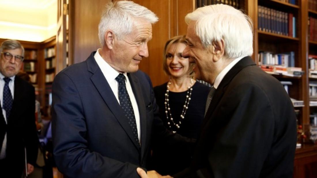 «Δεν είναι δίκαιο το βάρος του μεταναστευτικού να το σηκώνουν μια χούφτα χωρών. Αυτή η κατάσταση πρέπει ν' αλλάξει, επιβάλλεται ν' αλλάξει» ανέφερε ο γγ του Συμβουλίου της Ευρώπης, Τουρμπγέρν Γιάγκλαντ, κατά τη διάρκεια της συνάντησής του με τον Πρόεδρο της Δημοκρατίας, Προκόπη Παυλόπουλο, στο Προεδρικό Μέγαρο.