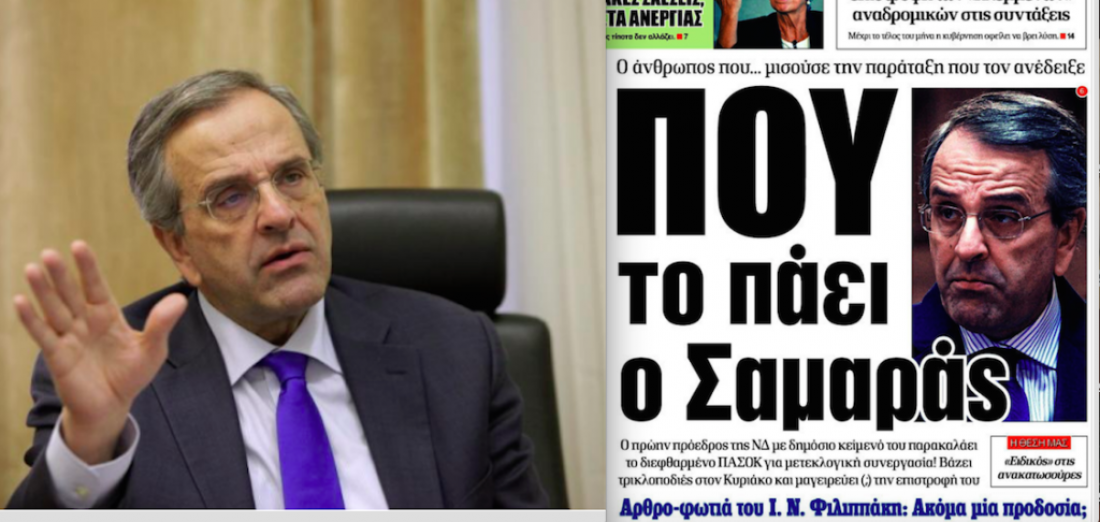 Σφοδρή επίθεση με βαρείς χαρακτηρισμους κατα του Αντώνη Σαμαρά εξαπέλυσε χθες η εφημερίδα «Δημοκρατία». Αφορμή το άρθρο του πρώην πρωθυπουργού στην εφημερίδα «Καθημερινή της Κυριακής» στο οποίο έθεσε το πλαίσιο μιας γραμμής κατά του ΣΥΡΙΖΑ στη βάση της οποίας θα συγκλίνουν από τώρα η ΝΔ και το Κίνημα Αλλαγής, επικειμένου να εξαπολύσουν ευθεία επίθεση στον Αλέξη Τσίπρα.