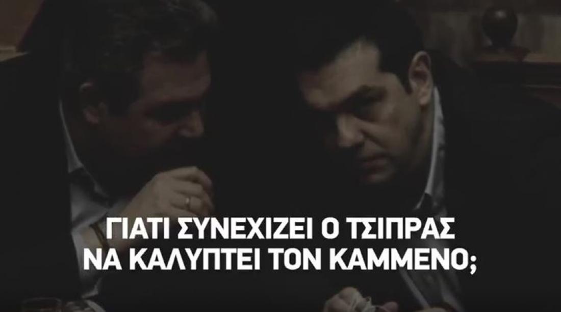 «Για 5 λεπτά αποκαλύψεων για την υπόθεση Καμμένου που κάθε Έλληνας πρέπει να δει» κάνει λόγο η Νέα Δημοκρατία που ανάρτησε νωρίτερα στα μέσα κοινωνικής δικτύωσης το σχετικό οπτικοακουστικό υλικό. Η Νέα Δημοκρατία επισημαίνει για μια ακόμη φορά το ερώτημα «γιατί ο κ. Τσίπρας συνεχίζει να καλύπτει;» τον υπουργό Εθνικής Άμυνας μετά τις αποκαλύψεις που έχουν γίνει σχετικά με την υπόθεση της πώλησης των βλημάτων στη Σαουδική Αραβία.