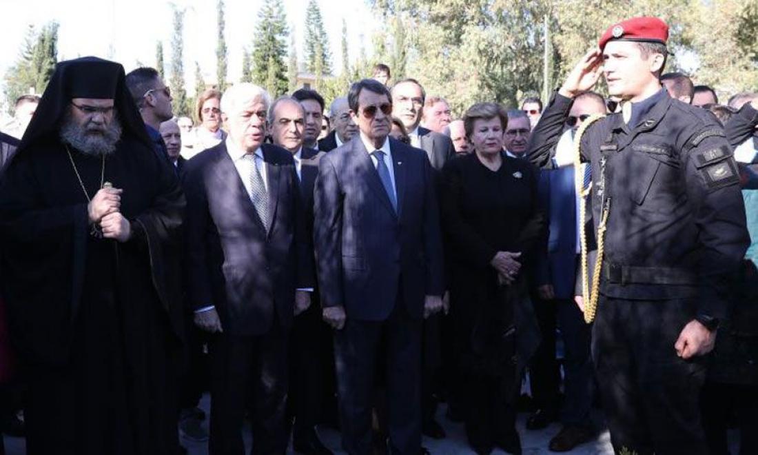 Ο Προκόπης Παυλόπουλος αναφέρθηκε στους αγώνες του Αρχιεπισκόπου Κύπρου Χρυσοστόμου Β΄ καθ' όλη της διάρκεια της ποιμαντορικής του πορείας, και ιδιαίτερα τα τελευταία χρόνια ως πηδαλιούχος της Κυπριακής Εκκλησίας. Εξέφρασε τις ευχαριστίες του προς τον Αρχιεπίσκοπο διότι, όπως είπε, «με τον λόγο και την παρουσία του κρατά ψηλά τον πήχυ του πατριωτισμού και αποτελεί ένα ισχυρό στήριγμα στον εκάστοτε Πρόεδρο (της Κύπρου) όσον αφορά το εθνικό θέμα.