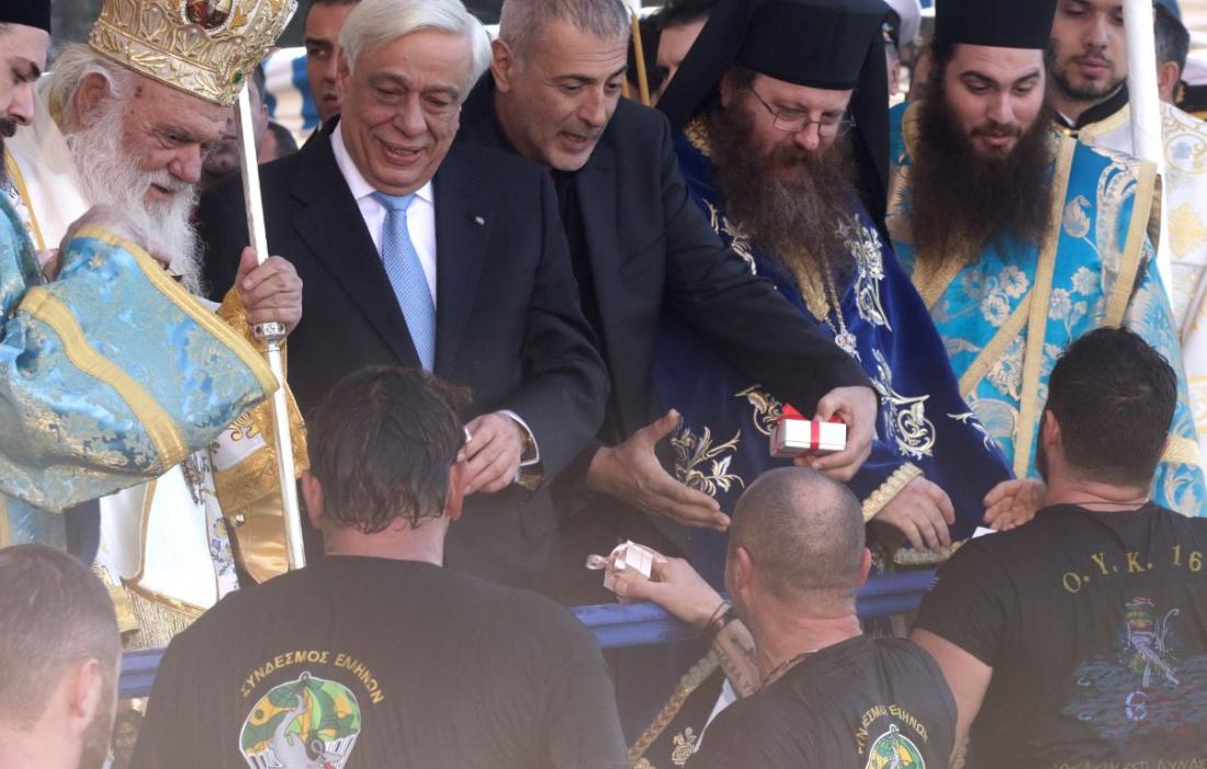 Παρουσία του Προέδρου της Δημοκρατίας Προκόπη Παυλόπουλου και χοροστατούντος του αρχιεπισκόπου Αθηνών Ιερωνύμου, πραγματοποιήθηκε σήμερα στον Πειραιά, στο πρώτο λιμάνι της χώρας, ο αγιασμός των υδάτων, με τη ρίψη του Τίμιου Σταυρού στη θάλασσα, ανάμεσα στις δύο πυραυλάκατους του πολεμικού ναυτικού "Γρηγορόπουλος" και "Δανίολος". Άνδρες του Σώματος Ελλήνων Βατραχανθρώπων βούτηξαν στη θάλασσα και ανέσυραν τον Σταυρό.