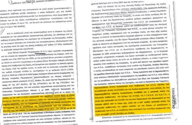 δ) μετά από έρευνα των αρμοδίων αρχών των ΗΠΑ αποδόθηκαν κατηγορίες στον υπαίτιο της διαρροής Bradley Manning, ο οποίος καταδικάστηκε σε ποινή στερητική της ελευθερίας τριάντα (30) ετών από τις αρμόδιες δικαστικές Αρχές των ΗΠΑ. Οπως προκύπτει από τα δημοσιευθέντα στον ιστότοπο «WIKILEAKS» τηλεγραφήματα της πρεσβείας των ΗΠΑ στην Αθήνα και τις καταθέσεις των εξετασθέντων μαρτύρων (και ιδίως των Σεραφείμ Τσιτσιμπή του Σωτηρίου, Χρήστου Φώλια του Σωτηρίου και Ιωάννη Βαληνάκη του Γεωργίου), δημιουργήθηκε έντονη δυσαρέσκεια στην Κυβέρνηση των ΗΠΑ εξαιτίας των συναφθεισών μεταξύ της Ελλάδας και της Ρωσίας συμφωνιών, στην επίταση, δε του δημιουργηθέντος κλίματος δυσαρέσκειας συνέβαλε και η αρνητική στάση της Ελληνικής Κυβέρνησης στο ζήτημα της ένταξης της F.Y.R.O.M. στο Ν.Α.Τ.Ο., η οποία είχε εκδηλωθεί στη Σύνοδο του ως άνω Οργανισμού στο Βουκουρέστι με την άσκηση «βέτο» από τη Χώρα μας, αλλά και η κατ' ουσίαν αρνητική στάση της Ελληνικής κυβέρνησης στο σχέδιο «ΑΝΑΝ» για την Κύπρο, με αποτέλεσμα η Κυβέρνηση των ΗΠΑ να αποβλέπει στην ανατροπή των ανωτέρω συμφωνιών που είχαν συναφθεί μεταξύ Ελλάδας και Ρωσίας.