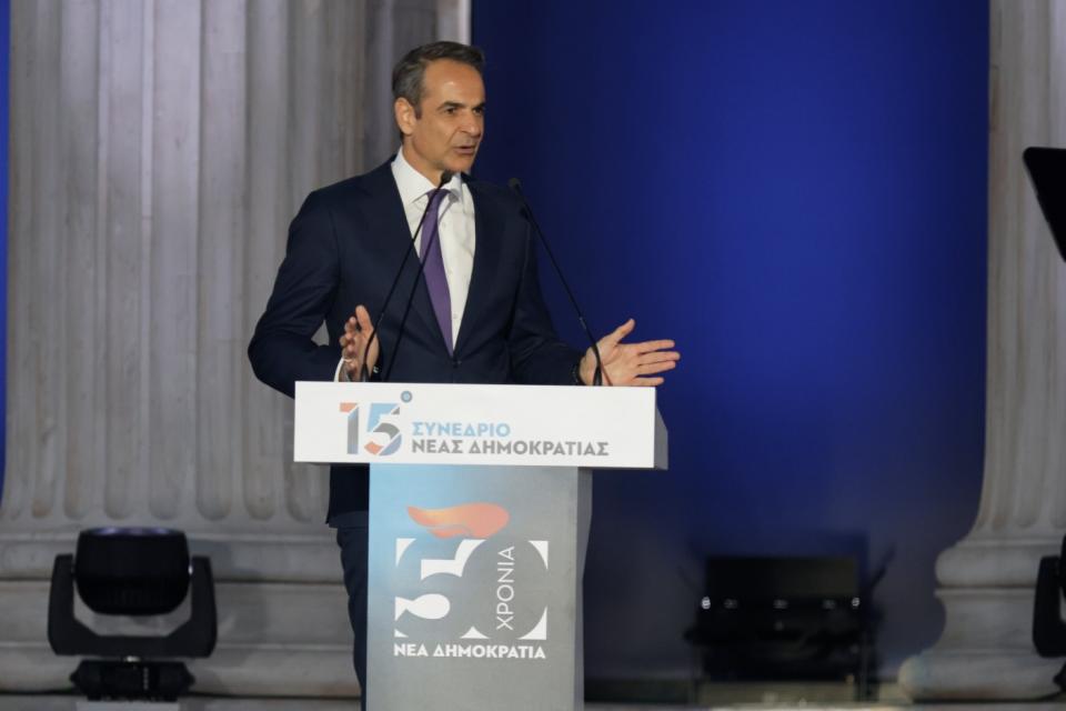 Σε εξέλιξη βρίσκεται η ομιλία του πρωθυπουργού και προέδρου της ΝΔ στο 15ο Συνέδριο του κόμματος που πραγματοποιείται στο Ζάππειο Μέγαρο.