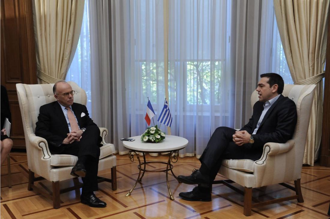 Τους στενούς δεσμούς Ελλάδας-Γαλλίας και τις σχέσεις αλληλεγγύης και αλληλοϋποστήριξης, σε μια κρίσιμη περίοδο για τη χώρα μας, επιβεβαίωσαν Αλέξης Τσίπρας και Μπερνάν Καζνέβ, κατά την έναρξη της κατ' ιδίαν συνάντησης τους στο Μέγαρο Μαξίμου.Πρόκειται για μια επίσκεψη του Γάλλου πρωθυπουργού στην Αθήνα που, όπως σημείωσε ο ίδιος, τελεί υπό την αιγίδα της φιλίας, της αλληλεγγύης και της εμπιστοσύνης, και που, όπως τόνισε ο Έλληνας πρωθυπουργός, σηματοδοτεί το ιδιαίτερο ενδιαφέρον της Γαλλίας για την Ελλάδα.