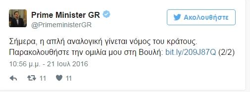 Αλ. Τσίπρας στο Twitter: "Σήμερα, η απλή αναλογική γίνεται νόμος του κράτους"