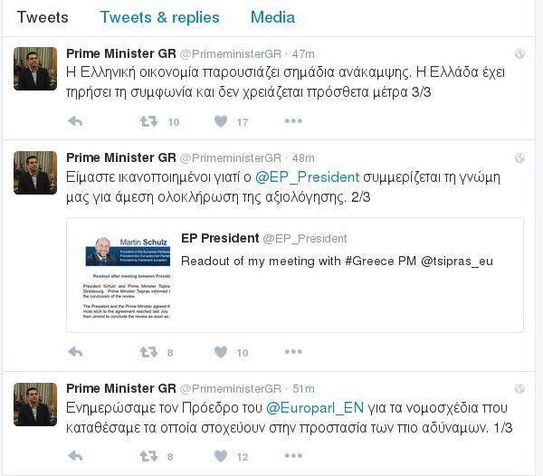 Δείτε τις αναρτήσεις του πρωθυπουργού στο twitter:
