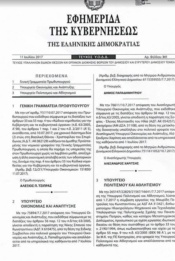 Όπως αναφέρει η απόφαση του πρωθυπουργού που δημοσιεύθηκε το βράδυ της Τρίτης στο ΦΕΚ «ανατίθενται, από 10.07.2017 και για χρονικό διάστημα δύο (2) ετών, στη Βασιλική Θάνου – Χριστοφίλου καθήκοντα άμισθης Προϊσταμένης του νομικού γραφείου της Γενικής Γραμματείας Πρωθυπουργού, η οποία θα παρέχει τις υπηρεσίες της στον Πρωθυπουργό χωρίς να λαμβάνει μισθό, αποζημίωση ή άλλη οικονομική απολαβή εκτός των οδοιπορικών της, δυνάμει της παρ. 4 του άρθρου 55 του Κώδικα νομοθεσίας για την κυβέρνηση και τα κυβερνητικά όργανα».