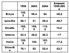 Όμως οι κυβερνήσεις του ΠΑΣΟΚ τα επόμενα έντεκα χρόνια, παρά την ευνοϊκή οικονομική συγκυρία, δεν έκαναν απολύτως τίποτα για να μειώσουν το χρέος σε αντίθεση με τις άλλες Ευρωπαϊκές χώρες(βλ. ”Ο «σκοτεινός πρίγκιπας» της αγκιτάτσιας.”) όπως ανάγλυφα παρουσιάζεται στον πίνακα.