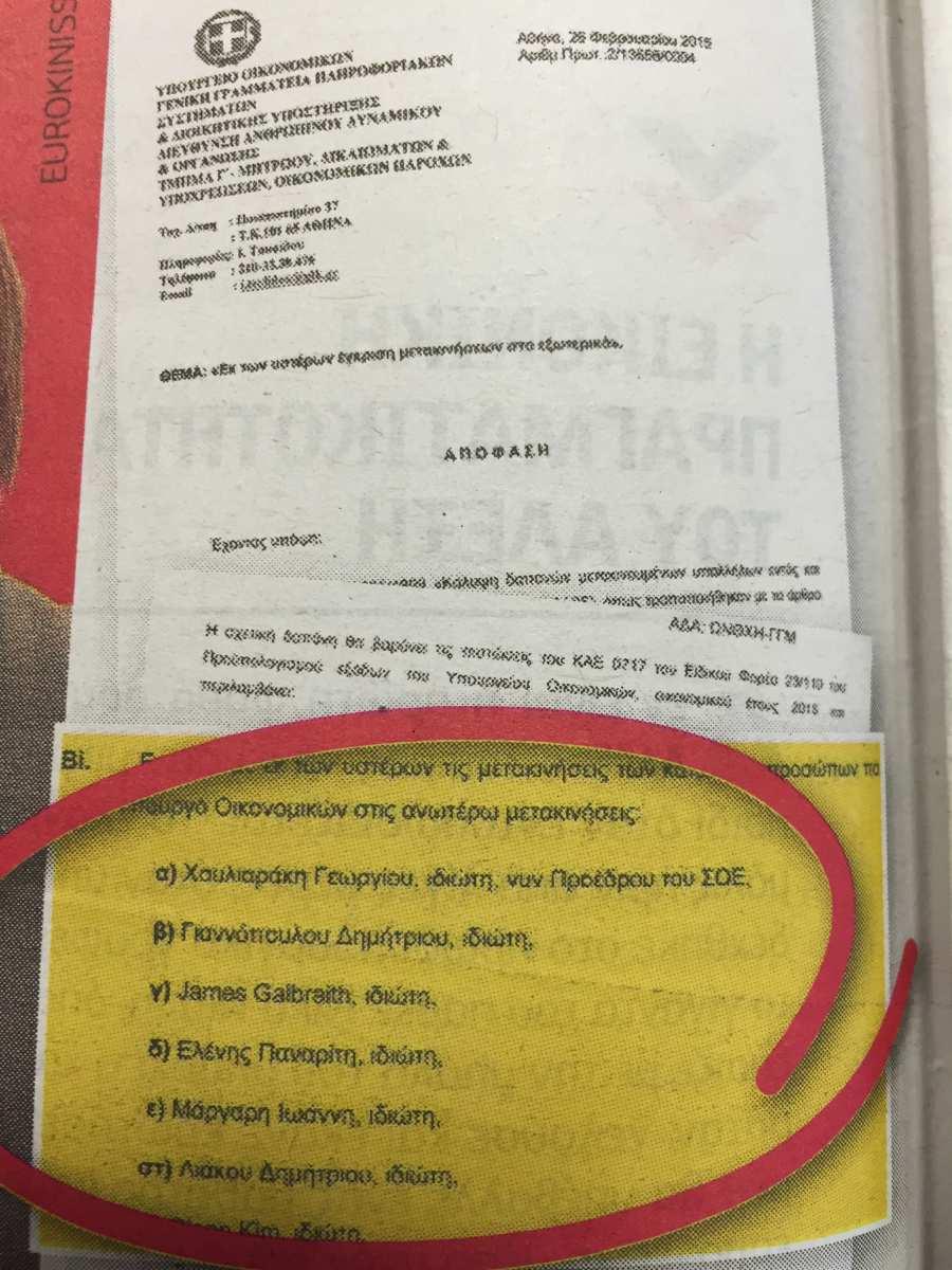 Δηλαδή με απλά λόγια στην ελληνική επίσημη αποστολή φαίνεται πως συνταξίδευαν Χουλιαράκης – Βαρουφάκης και Γκαλμπρέιθ.