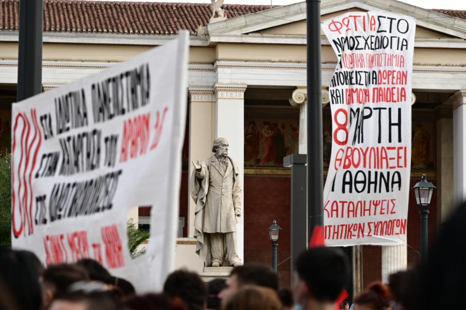 Με κεντρικό σύνθημα «Η πλειοψηφία μίλησε. Όχι στα ιδιωτικά πανεπιστήμια. Πτυχία με αξία. Δωρεάν σπουδές» οι διαδηλωτές και οι διαδηλώτριες συγκεντρώθηκαν αρχικά στα Προπύλαια εκφράζοντας τη διαφωνία τους και την αντίθεσή τους στο νομοσχέδιο του Υπουργείου Παιδείας για την ίδρυση των μη κρατικών πανεπιστημίων. Στα αιτήματα των φοιτητικών συλλόγων είναι μεταξύ άλλων, όπως αναφέρουν η απόσυρση του νομοσχεδίου για την ίδρυση ιδιωτικών πανεπιστημίων, αποκλειστικά δημόσιες και πραγματικά δωρεάν σπουδές, αύξηση της κρατικής χρηματοδότησης για τα πανεπιστήμια για καθηγητές, προσωπικό, υποδομές, πτυχία με αξία και δωρεάν φοιτητική μέριμνα για όλους και όλες (φοιτητικές εστίες, σίτιση, μεταφορά). Στο συλλαλητήριο συμμετέχουν επίσης σωματεία εκπαιδευτικών, μαθητές και μαθήτριες, εργατικά συνδικάτα και ομοσπονδίες.