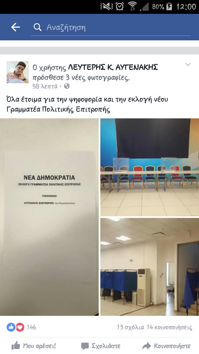 Σχετική ανάρτηση έκανε στο facebook ο κ. Αυγενάκης.