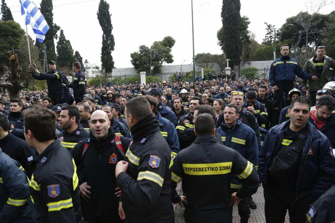 Μεγάλη διαδήλωση πυροσβεστών έξω από τη Βουλή