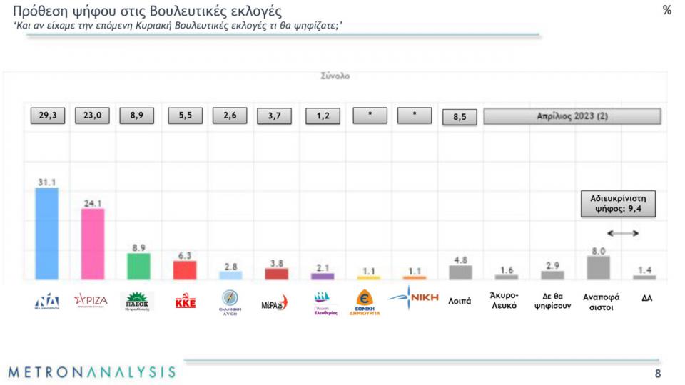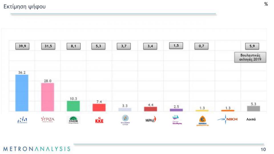 Δημοσκόπηση Metron Analysis: Στο 7% η διαφορά της ΝΔ από τον ΣΥΡΙΖΑ στην πρόθεση ψήφου (BINTEO)