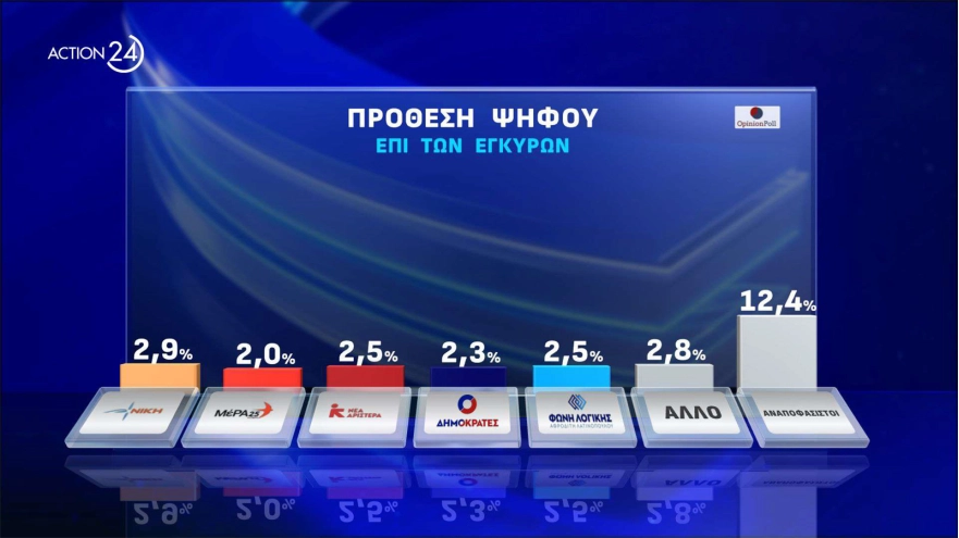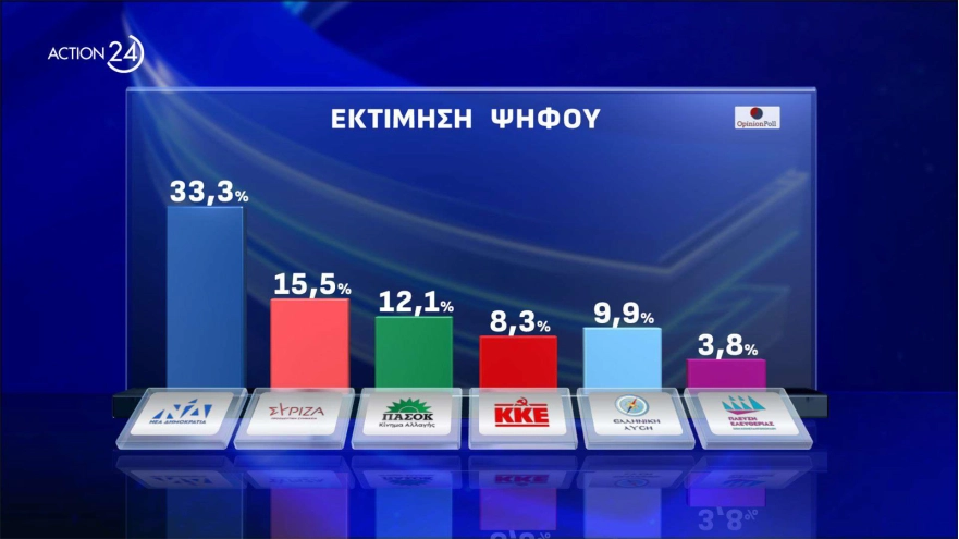 Δημοσκόπηση Opinion: Πάνω από τα ποσοστά του '19 η ΝΔ, κάτω από τα ποσοστά του '23 ο ΣΥΡΙΖΑ