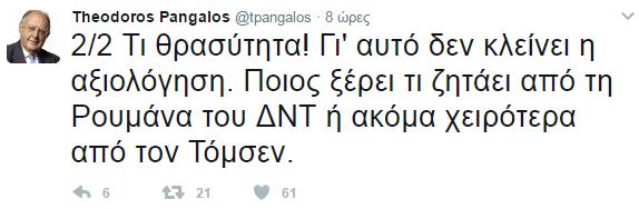 Ο σχολιάζοντας τη δήλωση αυτή ανήρτησε στο Twitter τα παρακάτω σχόλια: