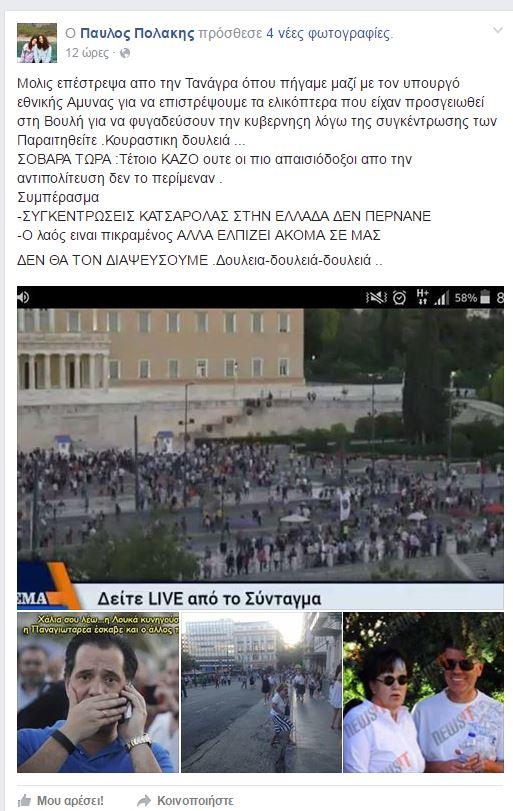 Ειρωνικά σχολίασαν στα μέσα κοινωνικής δικτύωσης Π. Πολάκης και Π. Καμμένος τη χτεσινή συγκέντρωση των «Παραιτηθείτε».