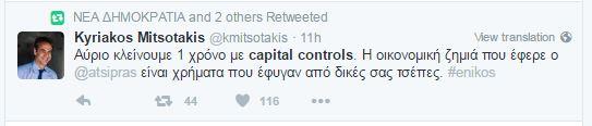Ενα χρόνο capital controls: Δείτε τα tweet του προέδρου και στελεχών της ΝΔ