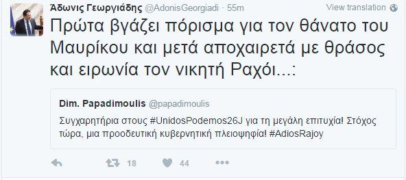 Επίθεση Άδωνι στον Παπαδημούλη για τα συγχαρητήρια στους Podemos