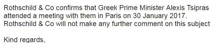 Τα ραντεβού με τον Αλέξη Τσίπρα στο Παρίσι, επιβεβαιώσαν στον Ant1, οι εταιρείες L'OREAL και Rothschild. Ωστόσο, δεν θέλησαν να επεκταθούν περισσότερο στο είδος των συζητήσεων που έγιναν.