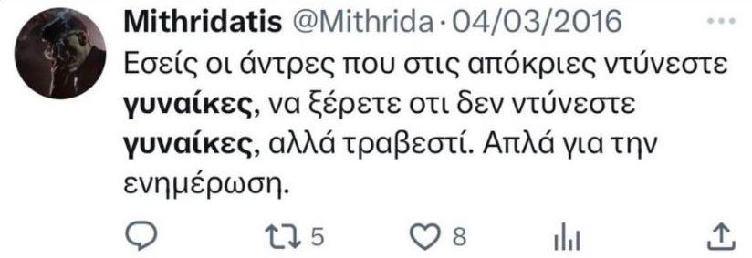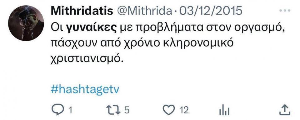 Ερώτημα της ΝΔ στον Τομέα Δικαιωμάτων του ΣΥΡΙΖΑ για τις χυδαίες, σεξιστικές και ομοφοβικές απόψεις Μιθριδάτη