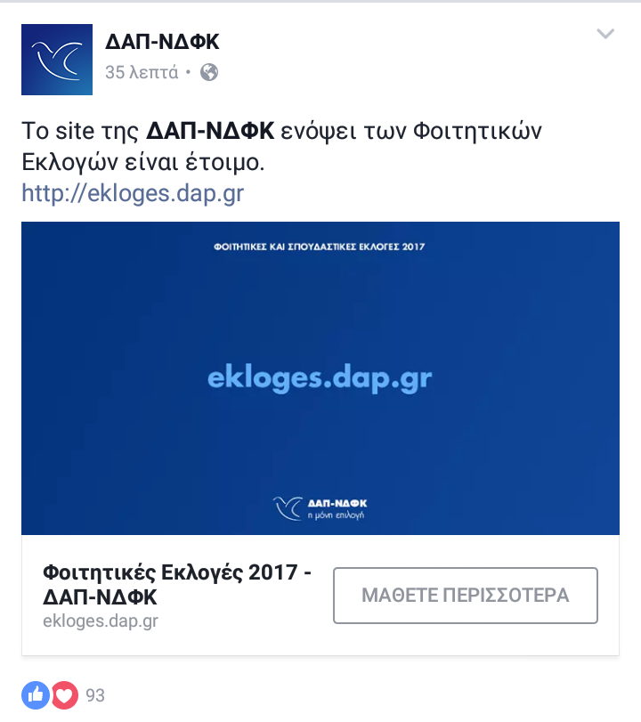 «Ετοιμοπόλεμο» το site της ΔΑΠ-ΝΔΦΚ ενόψει φοιτητικών εκλογών