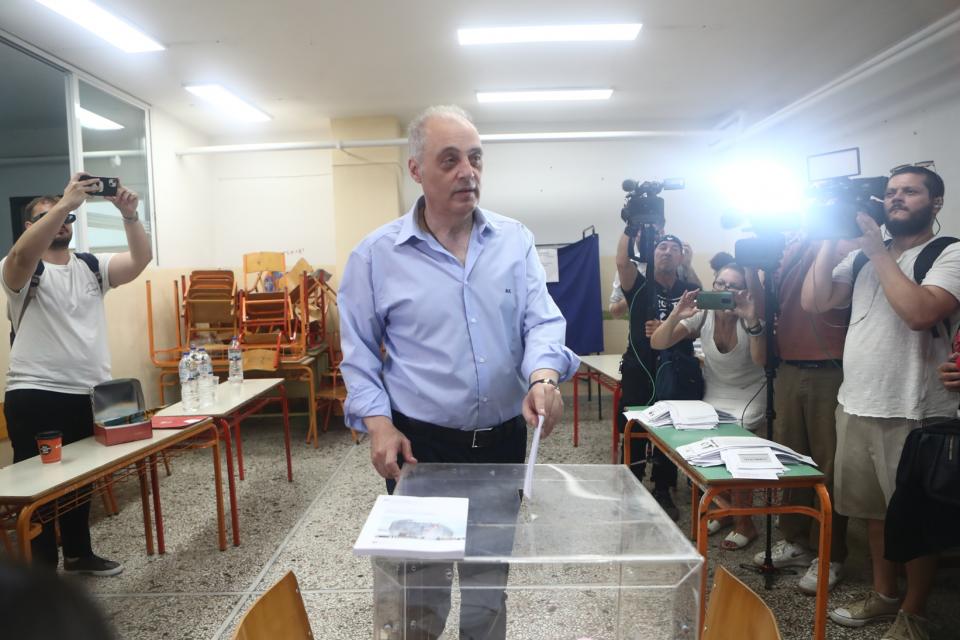 Ο πρωθυπουργός Κυριάκος Μητσοτάκης άσκησε το εκλογικό του δικαίωμα λίγο μετά τις 10:30, στο 1ο Γυμνάσιο Κηφισιάς.