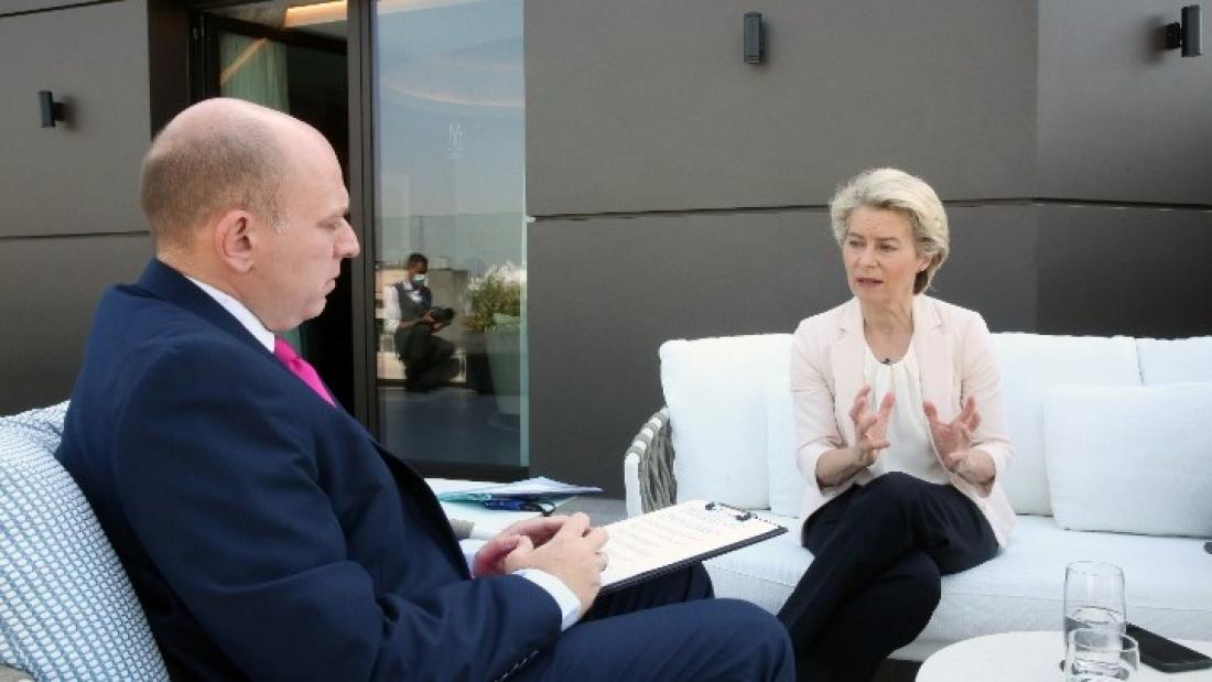 Μιλώντας στον Αιμίλιο Περδικάρη, πρόεδρο και γενικό διευθυντή του ΑΠΕ-ΜΠΕ, η πρόεδρος της Ευρωπαϊκής Επιτροπής τονίζει ότι οι εννέα χώρες του Μεσογειακού Νότου μπορούν να γίνουν πρωτοπόρες στον αγώνα κατά της κλιματικής αλλαγής.