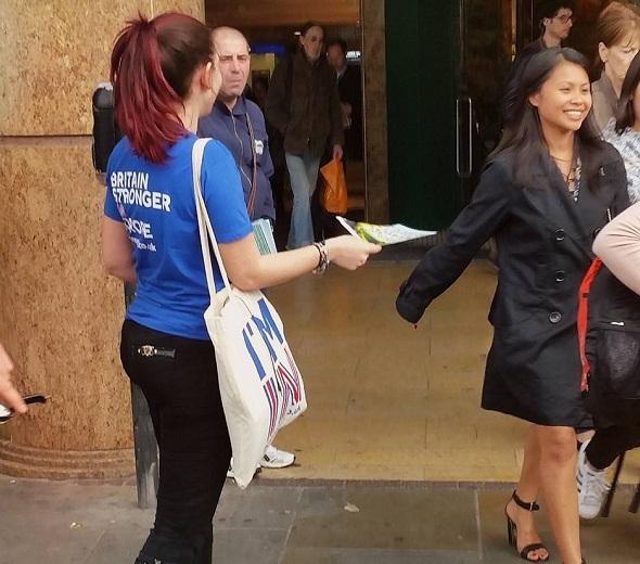 Δεν λείπει το ελληνικό χρώμα από την εκστρατεία για την παραμονή της Μεγάλης Βρετανίας στην Ευρωπαϊκή Ένωση. Η ΟΝΝΕΔ Μεγάλης Βρετανίας έδωσε και αυτή τη δική της μάχη, βγαίνοντας στους δρόμους και μοιράζοντας φυλλάδια αλλά και ενημερωτικό υλικό στην περιοχή του Hammersmith έξω από τη στάση του μετρό αλλά και στο Barron's Court.
