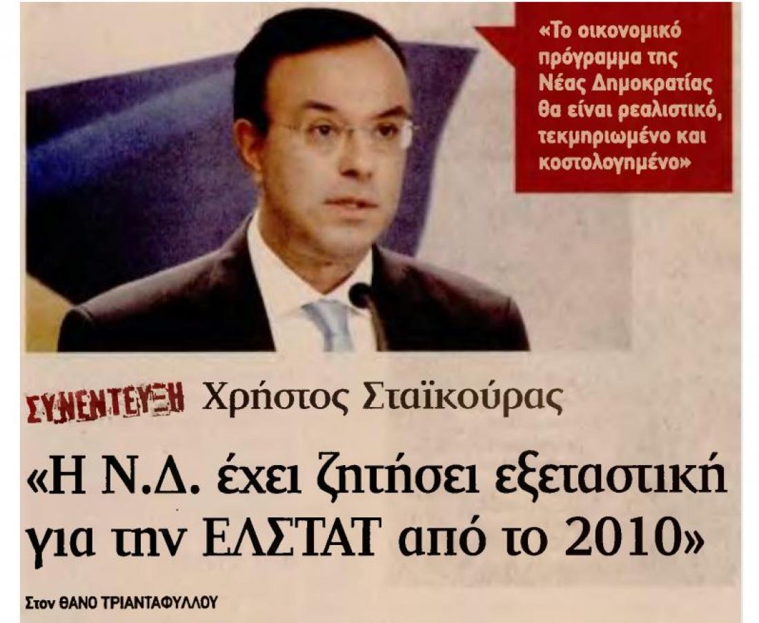Χρ. Σταϊκούρας: Η ΝΔ είχε ζητήσει από το 2010 Εξεταστική Επιτροπή για την ΕΛΣΤΑΤ