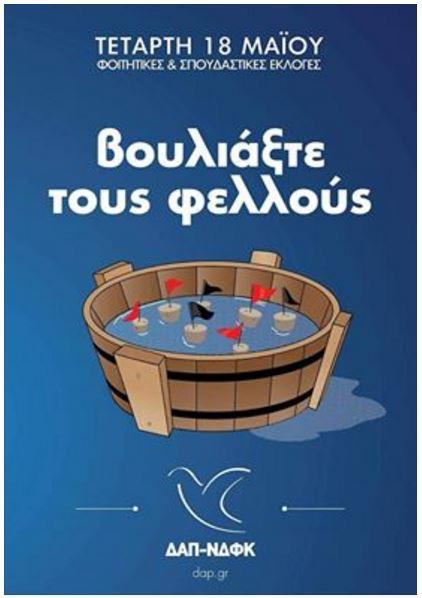 «Στις 18 Μαΐου, Βουλιάζουμε τους φελλούς», τονίζει η Δ.Α.Π. στο Facebook.