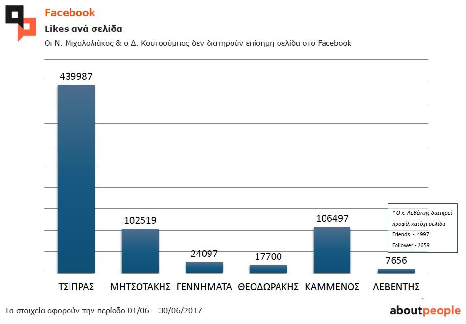 Σε ό,τι αφορά τους πολιτικούς αρχηγούς στο Facebook