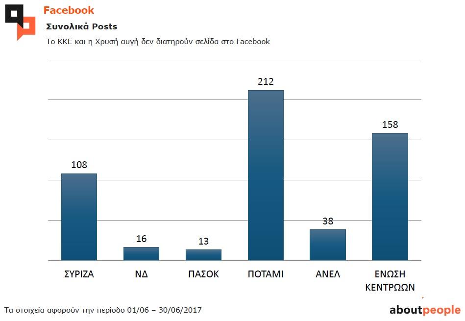 Οι διακυμάνσεις στη δημοφιλία και τη δραστηριότητα των λογαριασμών κομμάτων και πολιτικών ηγετών στο Facebook και στο Twitter, καταγράφονται σε ετήσια μελέτη της εταιρείας aboutpeople.gr.