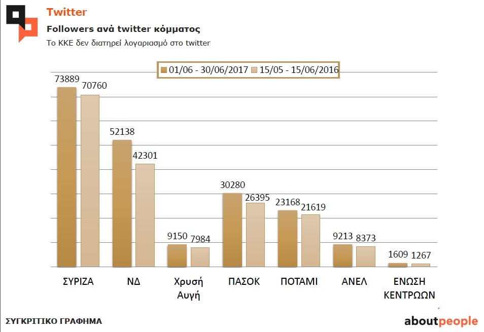 -Σημειώνεται πτώση σε followers σε σχέση με πέρσι για τον ΣΥΡΙΖΑ και την Ένωση Κεντρώων