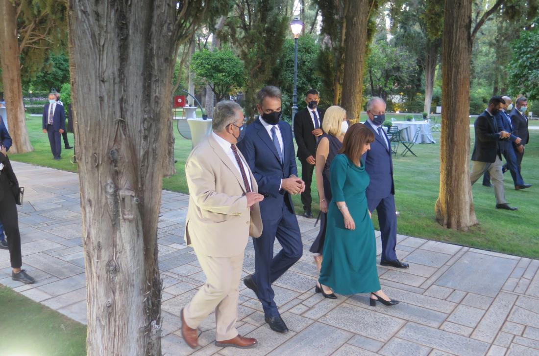 Στο επίκεντρο του ενδιαφέροντος βρέθηκε η συζήτηση της Προέδρου της Δημοκρατίας, Κατερίνας Σακελλαροπούλου, με τον Πρωθυπουργό Κυριάκο Μητσοτάκης, τον Πρόεδρο της Βουλής, Κώστα Τασούλα, τον Πρόεδρο του ΣΥΡΙΖΑ Αλέξη Τσίπρα, τον ΓΓ του ΚΚΕ Δημήτρη Κουτσούμπα, την Πρόεδρο του ΚΙΝΑΛ Φώφη Γεννηματά και τον Γραμματέα του ΜέΡΑ 25 Γιάνη Βαρουφάκη, στο γνωστό κιόσκι του Προεδρικού. Από την συνάντηση απουσίαζε ο πρόεδρος της Ελληνικής Λύσης, Κυριάκος Βελόπουλος, ο οποίος δεν παρευρέθηκε στη δεξίωση.