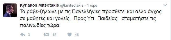 «Το ράβε-ξήλωνε με τις Πανελλήνιες προσθέτει και άλλο άγχος σε μαθητές και γονείς. Προς Υπ. Παιδείας: σταματήστε τις παλινωδίες τώρα» έγραψε ο κ. .