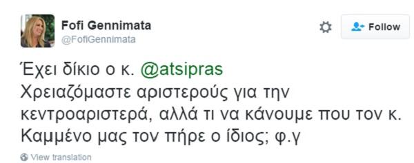 Δείτε τι έγραψε η κ. Γεννηματά στον ιστότοπο κοινωνικής δικτύωσης: