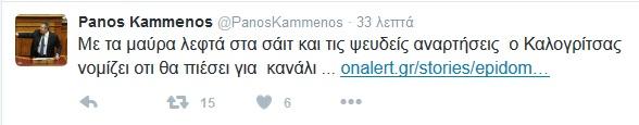 «Με τα μαύρα λεφτά στα σάιτ και τις ψευδείς αναρτήσεις ο Καλογρίτσας νομίζει ότι θα πιέσει για κανάλι...», αναφέρει σε ανάρτησή του στο Twitter, o κυβερνητικός εταίρος.