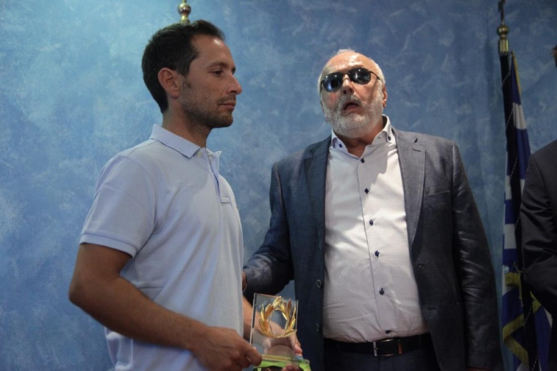 Στον αθλητή και τον προπονητή απονεμήθηκαν τιμητικές πλακέτες με επίχρυσο κότινο, καθώς αμφότεροι είναι υπάλληλοι του υπουργείου Εσωτερικών: ο πρώτος στη κεντρική υπηρεσία (στη Γενική Διεύθυνση Οικονομικών Υπηρεσιών και Διοικητικής Υποστήριξης) και ο δεύτερος στην Αποκεντρωμένη Διοίκηση Αιγαίου.