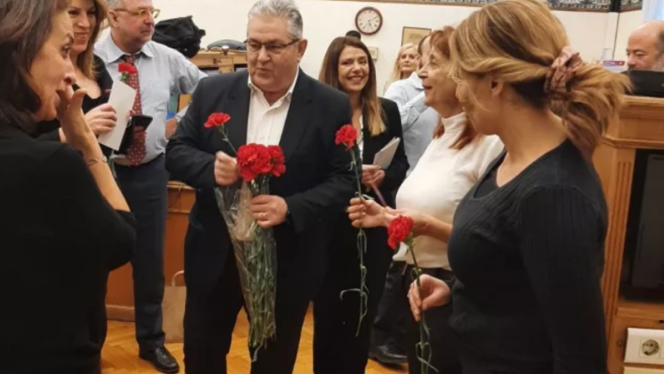 Κόκκινα γαρύφαλλα από τον Δ. Κουτσούμπα στις γυναίκες δημοσιογράφους με αφορμή την 8η Μάρτη